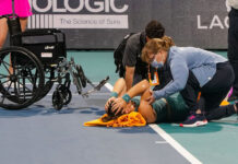 Na początku trzeciego gema drugiego seta Andreescu źle stanęła i doznała urazu stawu skokowego.