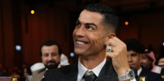 Ronaldo poprawia mikrofony na scenie podczas Globe Soccer Awards 2025